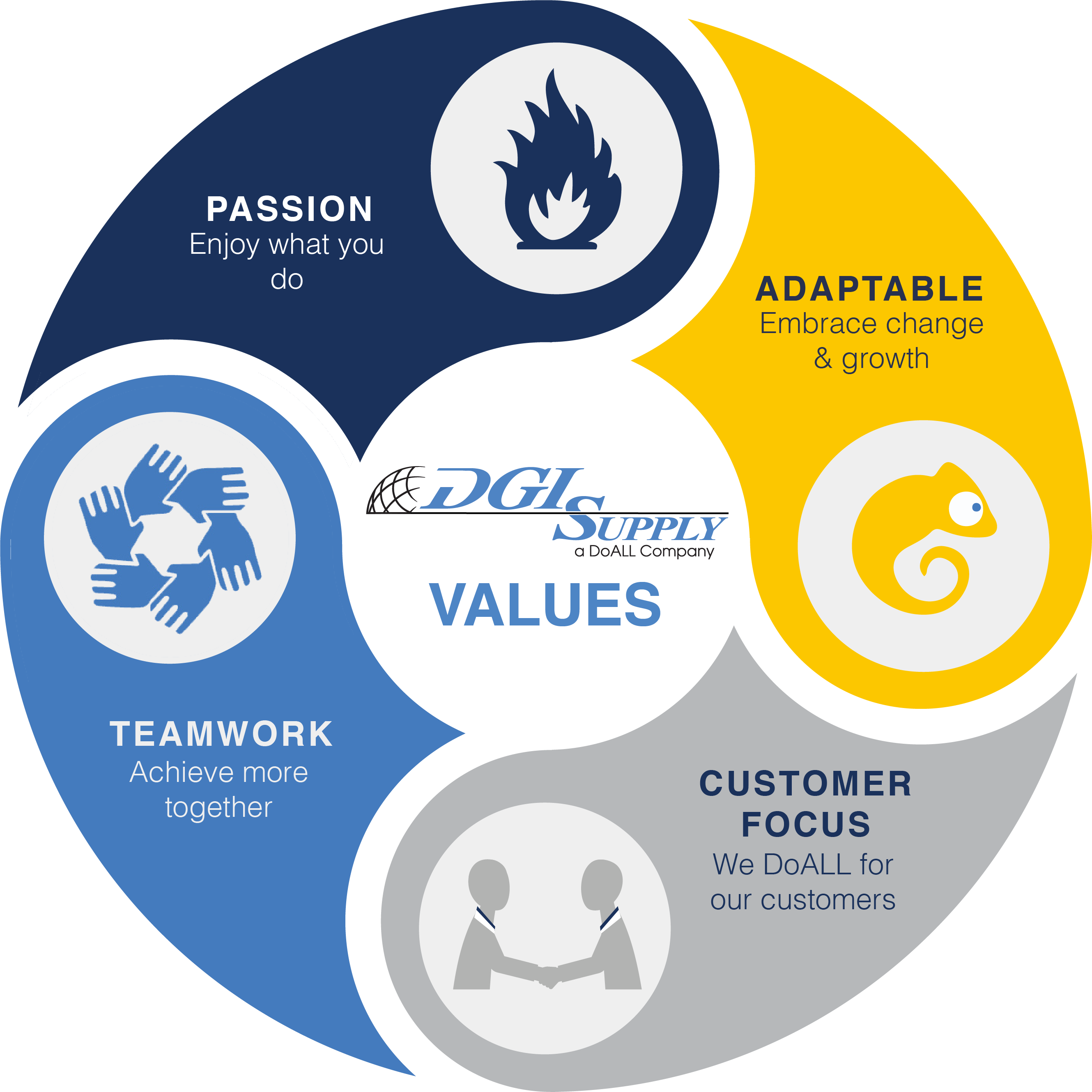 DGI Supply, a DoALL Company since 1927, is a family owned and operated North American leader in providing industrial distribution solutions to the marketplace. With 38 supply centres across North America that include 8 regional warehouses strategically located across Canada, DGI Supply has grown into the most reliable, experienced, solution oriented industrial distributor available to the market today. With over 1000 quality brand name manufacturers you can be assured DGI Supply can provide you with the most cost effective solution to best suit your manufacturing needs.