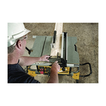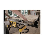 The DWE7491RS 10 in jobsite table saw 32-1/2 in rip capacity and a rolling stand has a 15 A motor and 32-1/2-in rip capacity to allow cutting of large and hardwood materials. Features tool free guarding component adjustments and fast, accurate fence adjustments. Rolling stand designed for easy set up and breakdown with excellent stability.