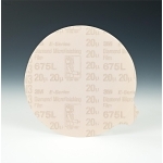 3M™, 7000045047, PSA Disc, Microfinishing, Series: 675L, 5 in Diameter Disc, 20 micron Grit, Diamond Abrasive, Applicable Materials: Carbide, Cast Iron, Ceramic, Chilled Cast Iron, Chrome Carbide, Chrome Oxide, Granite, High Nickel Alloy, HVOF, Nickel Based, Non-ferrous Metal, Oxide, Soft Metal, Stone and Tungsten Carbide