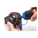 Crescent chalk reels are feature-rich in order to make every pro’s work easier. With a one-way refill valve and a quarter-turn removable top, filling the chalk reel is quick and clean. A one-hand hub lock keeps the reel firmly secured and the end hook slides securely into a storage recess so it won’t catch on other items in your tool bag. With a 6:1 gear ratio, retraction is fast and the compound braided line improves chalk retention for well-defined lines, snap after snap.