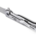 Ball bearing-assisted flipper tab for effortless one-handed deployment. Frame lock mechanism for sturdy blade opening and closing. D2 steel provides long edge retention for the blade. Pocket clip designed for deep pocket carry.