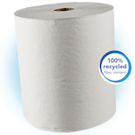 Scott® Essential™ provides reliable balance of efficiency, performance and value. If you’re looking for high capacity commercial paper towels compatible with most universal roll paper towel dispensers, the Scott® Essential™ 100% Recycled Fiber Hard Roll Paper Towels are an excellent choice for your business. The roll has a core size of 1-1/2 in and is compatible with a variety of Kimberly-Clark* Professional dispensers and many universal towel dispensers. Plus, measuring 8 in wide x 800 ft long, they are designed to reduce maintenance time, run-outs and complaints. These absorbent recycled paper towels are designed for efficient general-purpose cleaning and drying, so your employees and guests will use less, saving you money.
