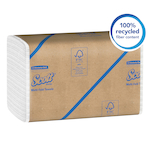 Scott Essential provides reliable balance of efficiency, performance and value. When your office restroom or kitchen needs commercial paper towels, Scott Essential 100% Recycled Fiber Multifold Paper Towels are an economical choice. They are made with 100% recycled fiber (RF), so you can feel good about choosing them for your business. Plus, they fit into any universal dispenser for trifold paper towels or multifold towels (which helps control over use). Made with a minimum of 40% post-consumer waste.