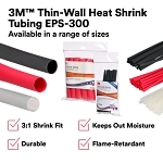 3M™ Heat Shrink Tubing EPS-300 is a dual wall tubing provides the advantage of an integral, adhesive lined construction. This flame retardant tubing with a 3:1 shrink ratio offers insulation for 600V rated applications. The flexible polyolefin construction features an internal layer of thermoplastic adhesive, which offers moisture seal protection in automotive and marine applications.