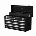 The 83151 is a black, 3 drawer, 20-inch steel toolbox. The drawers are all 2 inches in height and are on ball bearing slides. The top area is 2-1/2 inches in height. The box has a keyed center lock for improved security.