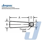 Jergens Specialty Fasteners maintains a large inventory of several varieties of knobs, handles, handwheels, and cranks. Whether you™re looking for prototype or production quantities, we can help!Features, Benefits, & Product Specifications:Handle Material: 2024 AluminumStem Material: Low Carbon SteelFinishes:Revolving Handle: Available in Clear or Black AnodizeStem for Revolving Handle: Zinc PlateSolid Handle: PlainThread: 2A-UNC for Inch, Class 6g for Metric