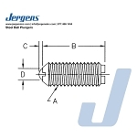 Jergens Ball Plungers are made under extremely accurate machine controls and rigid inspection procedures. Accurate spring alignment is maintained by using a stainless rivet with a long shank on larger sizes of our Ball Plungers. This precisely positions the spring for more accurate ball travel and provides positive control of spring pressure. By minimizing the lining pin head thickness, we are able to use the longest possible springs.Features & Benefits:Positive control of spring pressureLess fatigue and longer spring life by minimizing lining pin head thicknessUniform ball projection keeps variances within +/-0.005".Conforms to TCMA dimensional standardsPatch-style locking elementSpecial materials and sizes available upon requestsMaterial Specifications:Body Material: Low Carbon SteelBall Material: 440 Stainless SteelSpring Material: 17-7 PH Stainless SteelBody Finish: Black OxideThread:Inch: 2A-UNCMetric: Class 6gNote(s):For easy insertion of Ball Plungers with Locking Elements, the tapped hole should be countersunk at least 0.030"-0.045" (0.76mm-1.14mm) larger than the major diameter of the plunger.