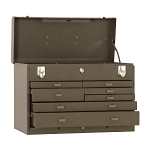 Kennedy® Machinist's Chest, Light Duty, Series: Signature, 20-1/8 in Width, 8-1/2 in Depth, 13-5/8 in Height, 20 ga Thickness, (4) 1 in H x 8-5/8 in W x 7-1/2 in D, (1) 2 in H x 8-5/8 in W x 7-1/2 in D, (1) 1-1/2 in H x 18-1/4 in W x 7-1/2 in D, (1) 2-1/4 in H x 18-1/4 in W x 7-1/2 in D Drawer, 7 Drawers, 1694 cu-in Capacity, Bale Side/Cushioned/Plate Handle, Steel, Powder Coated, Brown Wrinkle
