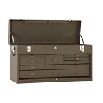 Kennedy® Machinist's Chest, Series: Signature, 26-11/16 in Width, 8-1/2 in Depth, 13-5/8 in Height, (4) 1 in H x 8-5/8 in W x 7-1/2 in D, (1) 2 in H x 8-5/8 in W x 7-1/2 in D, (1) 1-1/2 in H x 24-3/4 in W x 7-1/2 in D, (1) 2-1/4 in H x 24-3/4 in W x 7-1/2 in D Drawer, 8 Drawers, 2531 cu-in Capacity, Side/Folding Handle, Steel, Powder Coated, Brown Wrinkle