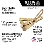 Klein® Chicago® Grip Cable Pulling Grip, 0.08 to 0.2 in Dia Cable, Copper Cable, 1500 lb Load, Steel