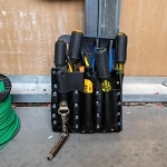 Features a large utility pocket, three pliers pockets and two screwdriver pockets. Stitched and riveted leather construction for long life. Slotted to fit belts up to 2'' (51 mm) wide. Includes a knife snap. Assembled in USA of U.S. and imported components.