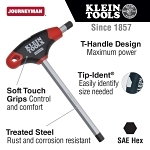The Klein JTH9E10 5/32-Inch Hex Key with Journeyman T-Handle features a T-Handle design that delivers more torque to the fasteners. The part number and hex size appear on the handle for easy, positive identification. Soft touch grips are designed for maximum control and comfort.