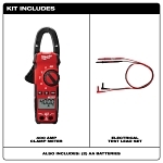 Heavy duty True-RMS electrical current tester for professional residential, commercial, and industrial applications. The perfect tool for the professional electrician; includes all the features that are needed to get the job done in the field, on-site or in the plant. Milwaukee 2235-20 clamp meter features: jaw size of 1.0 in. measuring up to 350 MCM cable; rated cat III 600 V; current measurement to 400 A AC; voltage measurement to 600 V AC/DC; LED work light to improve task lighting; resistance measurement to 4000 ohms; test for continuity; black on white display and backlight for easier reading; rugged over-molding for increased durability and user grip; includes one (1) electrical test lead set, two (2) AAA batteries, and manual; covered by 5 year warranty.
