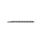 Milwaukee® SAWZALL® Reciprocating Saw Blade, Tapered Back, 9 in Length, 3/4 in Width, 0.049 in Thickness, 5 TPI, Fleam Ground/Gulleted/Induction Hardened Teeth, 1/2 in Tang, Universal/Toothed Edge Tang, HSS Cutting Edge, Steel Body, Bright, White, Applicable Materials: Wood