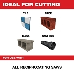 Diamond grit the Torch SAWZALL blades are ideal for cutting cast iron, hard tile, masonry and other abrasive and hard materials.