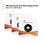 3M™, 7000021421, Heat Shrink Tube, Thin Wall, Series: FP-301, 600 V, 1/2 in ID Expanded, 1/4 in ID Recovered, Single (Thin) Wall, 0.025 in Wall Thickness Recovered, 2:1 Shrink Ratio, 100 ft Length, -67 to 275 deg F, 212 deg F Shrink, Polyolefin, Black