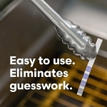 The 3M™ Shortening Monitor is used by dipping the strip into hot shortening until all four blue bands are submerged. After the strip is removed, the number of bands observed to change from blue to yellow indicates the exposure to a specific free fatty acid (FFA) concentration. For instance, if the bottom band completely changes from blue to yellow, but the top three stay blue, then there is a greater than 2% free fatty acid concentration but less than 3.5% FFA. As an operator, you can use the 3M™ Shortening Monitor test strips to determine the discard point for your shortening.