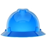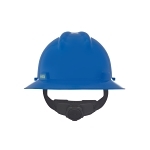 MSA V-Gard® Hard Hat, Full Brim, Standard Size, Fits Minimum Hat Size: SZ 6-1/2 to 8, Blue, Polyethylene, 4-Point Fas-Trac® III Suspension, ANSI Electrical Class Rating: Class E, ANSI Impact Rating: Type I, Slotted: Yes, Ratchet Adjustment