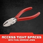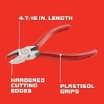 Proto® Ergonomics™ Diagonal Cutter Plier, Thin Narrow Jaw, 18/32 in L x 9/16 in W x 5/16 in THK Jaw, Forged Alloy Steel Jaw, Flush Cut Style, 4-7/16 in Overall Length, Plastisol Grip Handle, ASME B107.11, Federal GGG-P-468A Specifications Met, No Insulated, Red