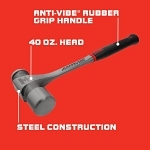 Proto® Ball Pein Hammer, 15.24 in Overall Length, 1.72 in Face Dia, 40 oz Head, Steel Head, 5.39 in Head Length, Steel Handle, Molded Textured Rubber Grip