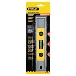Stanley® Torpedo Level, Magnetic Base, 0.002 in Accuracy, 9 in Length, 3.9 in Width, 0.8 in Height, 3 Vials, Vial Positions: (1) Plumb, (1) Level, (1) 45 deg, 360 deg/Center/Top Read Vial, Aluminum, Silver/Yellow