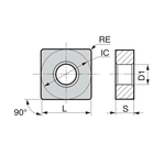 SUMITOMO Turning Insert, SNMG Insert, 432 Insert, Squared, 1/2 in Inscribed Circle, 3/16 in Thickness, 12 Seat, Negative Rake, EMU Chipbreaker, 1/32 in Corner Radius, 0.2031 in Hole Dia, Manufacturer's Grade: AC810P, ANSI Code: SNMG432EMU-AC810P, ISO Code: SNMG120408N-MU-AC810P, 90 deg Included Angle, 0 deg Relief Angle, Neutral Cutting, Carbide, CVD-Super FF Coated, Material Grade: P, For Use On: Steel