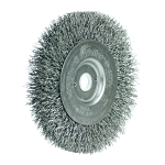 Weiler®, 00144, Wheel Brush, Narrow Face, Series: TLN-4, 4 in Diameter Brush, 1/2 in Face Width, 1/2 to 3/8 in Arbor Hole, Crimped Filament/Wire, 0.014 in Dia Filament/Wire, Steel Fill, 7/8 in Trim Length, 12500 rpm Maximum, Unthreaded Arbor Attachment