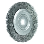 Weiler®, 00214, Wheel Brush, Narrow Face, Series: TLN-3, 3 in Diameter Brush, 7/16 in Face Width, 1/2 to 3/8 in Arbor Hole, Crimped Filament/Wire, 0.008 in Dia Filament/Wire, Steel Fill, 1/2 in Trim Length, 12500 rpm Maximum, Unthreaded Arbor Attachment