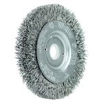 Weiler®, 00274, Wheel Brush, Narrow Face, Series: TLN-3, 3 in Diameter Brush, 7/16 in Face Width, 1/2 to 3/8 in Arbor Hole, Crimped Filament/Wire, 0.014 in Dia Filament/Wire, Steel Fill, 1/2 in Trim Length, 12500 rpm Maximum, Unthreaded Arbor Attachment